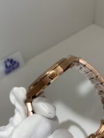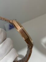The iconic “Grande Tapisserie” pattern with genuine-level depth and texture. Applied rose gold hour markers and hands with clean luminescence. Date window at 3 o’clock with perfect font, size and positioning.