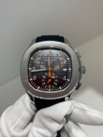 The iconic waffle-pattern bezel features uniform brushed surfaces, a signature design of the Aquanaut. The transition between the bezel and case is sharp and precise, with no gaps—mirroring the genuine’s hand-finished craftsmanship, and the chronograph pushers have a seamless finish with the case.