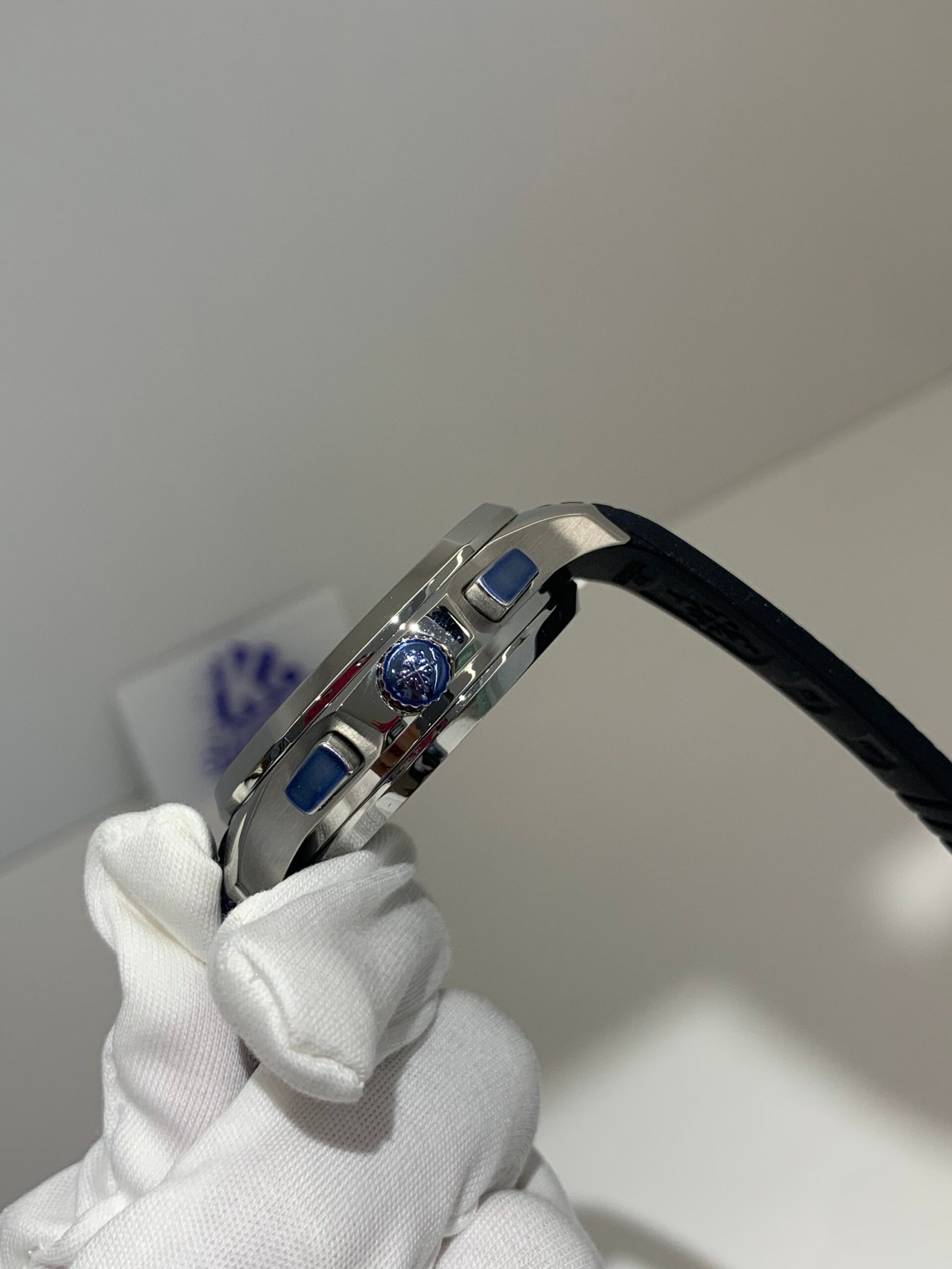 The Pinnacle of Aquanaut Sportiness. Featuring the legendary Blue Dial with Chronograph Function and the ultra-thin Clone 28-520 Movement.