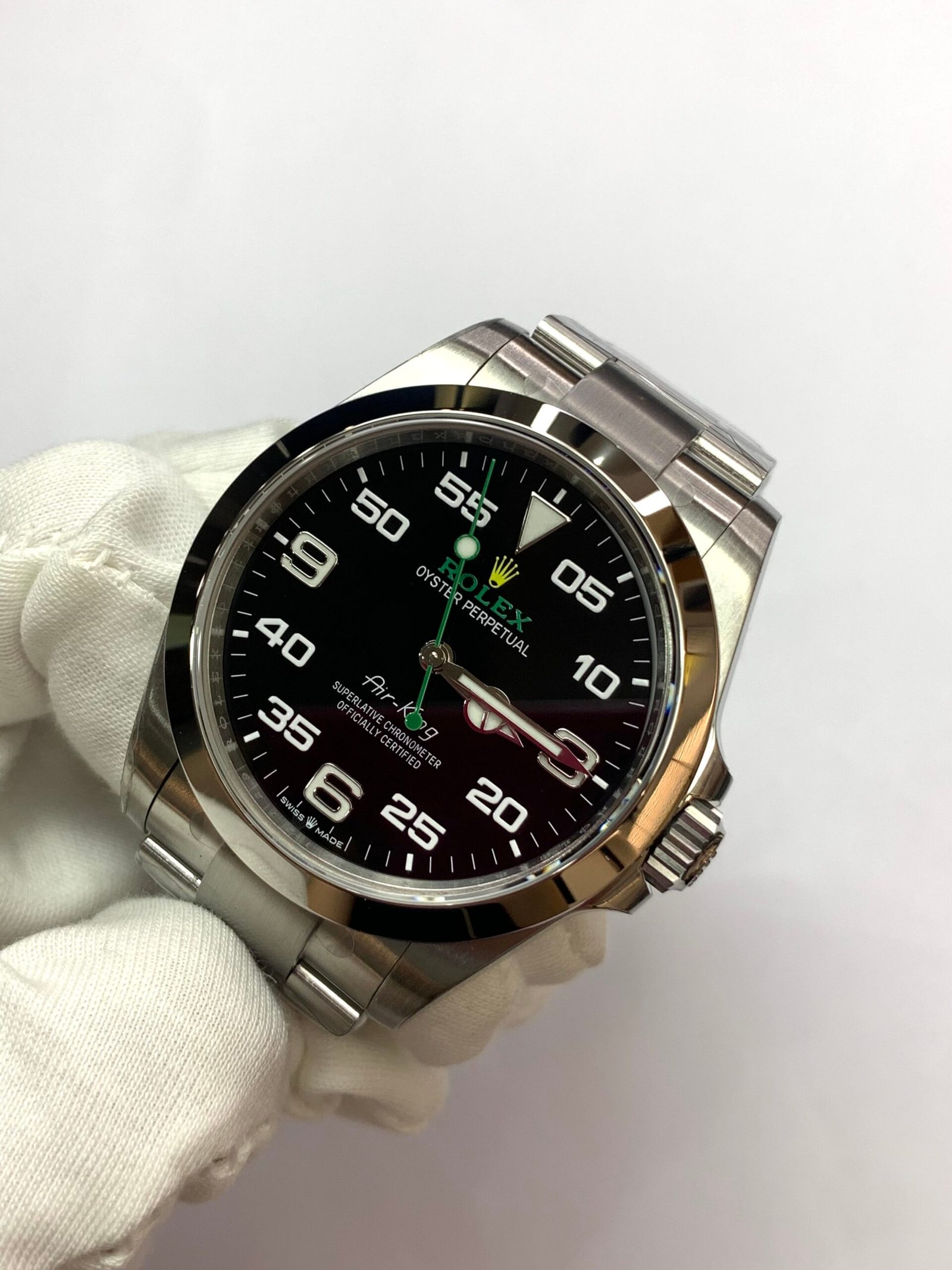 904L Oystersteel FinishVSF continues its dominance in case machining. The 904L stainless steel features industry-leading brushing on the lugs and a buttery smooth bracelet taper that feels identical to the genuine article on the wrist, embodying the AIR-KING’s iconic durability and sporty charm.