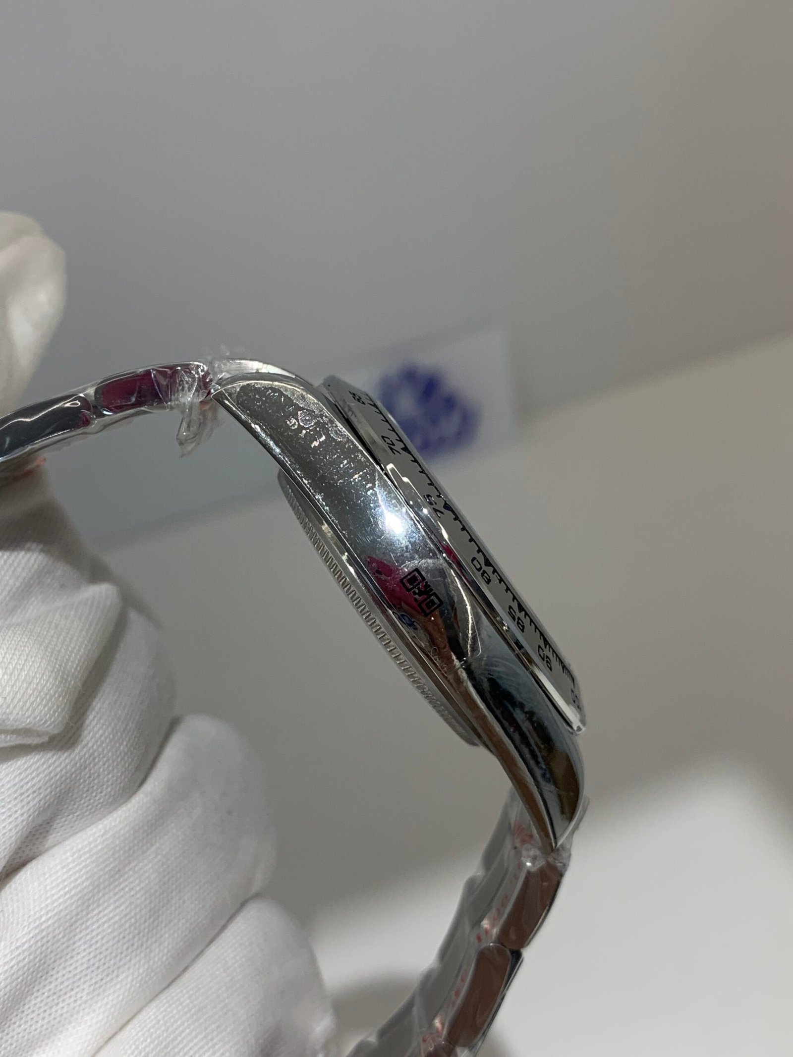 VSF showcases premium-level case craftsmanship. The solid white gold structure features precise brushing on the lugs, mirror polishing on the sides, and an incredibly solid feel on the wrist, identical to the genuine.