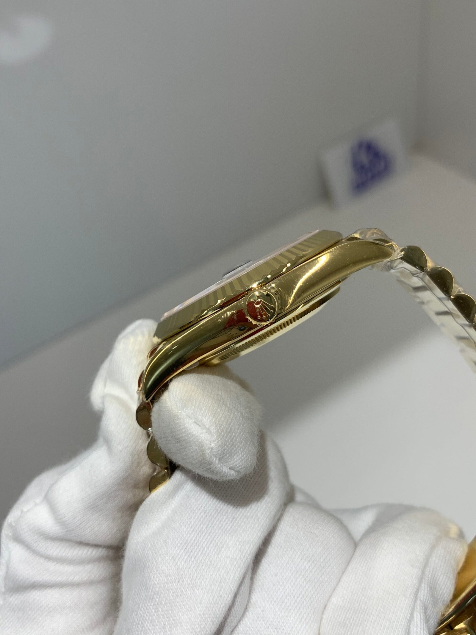 Polished 18K Yellow Gold BezelA classic smooth bezel crafted from 18K yellow gold, perfectly polished to a mirror shine. It frames the dial without distraction and maintains the correct curvature relative to the mid-case, consistent with the genuine design.