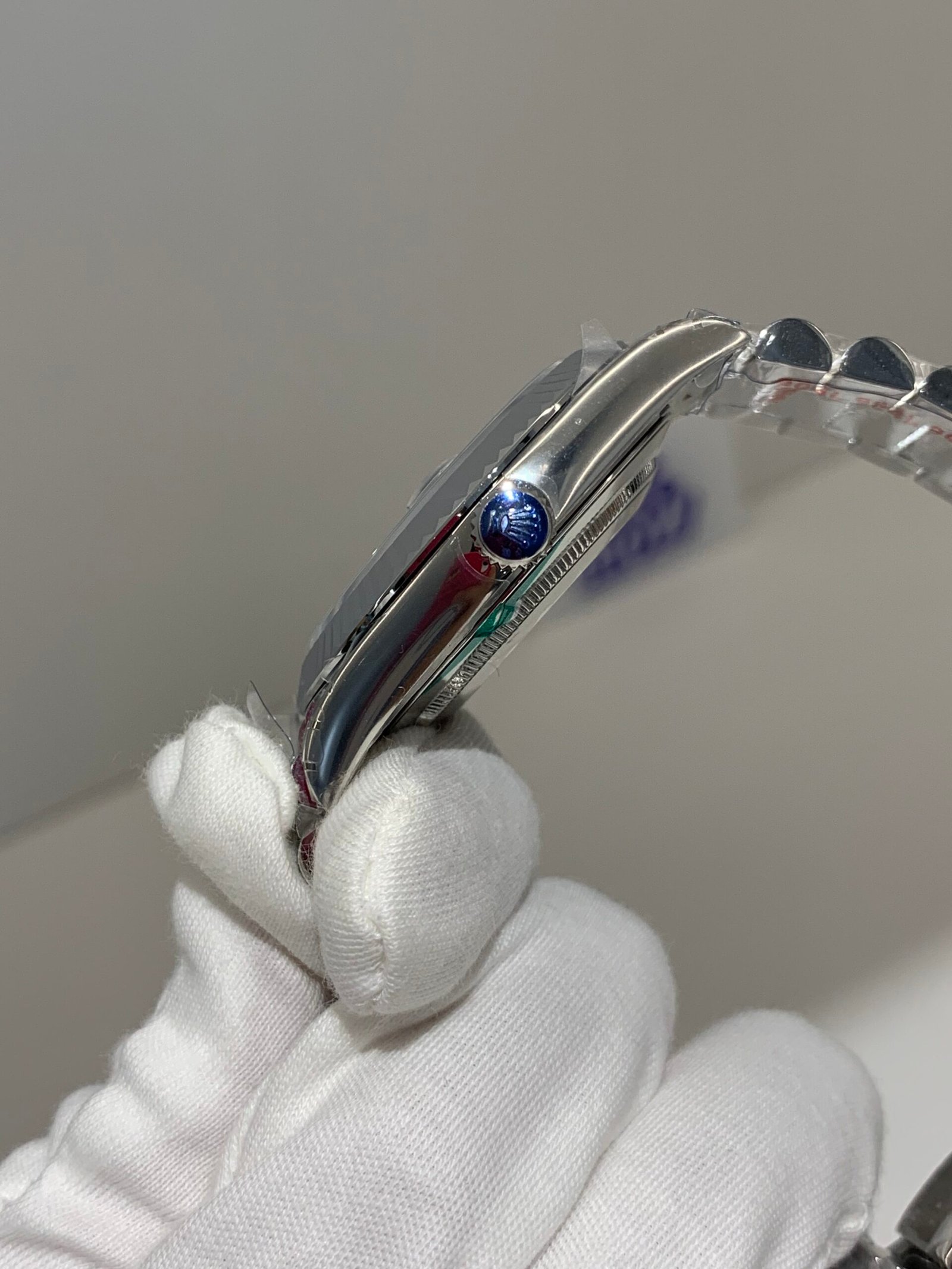 Crystal Clarity. VSF sapphire crystal with no milky white edge, correct internal anti‑reflective coating, scratch‑resistant, and the iconic Cyclops lens integrated seamlessly (no glue marks). The AR coating makes the blue ombré dial pop in all lighting conditions.
