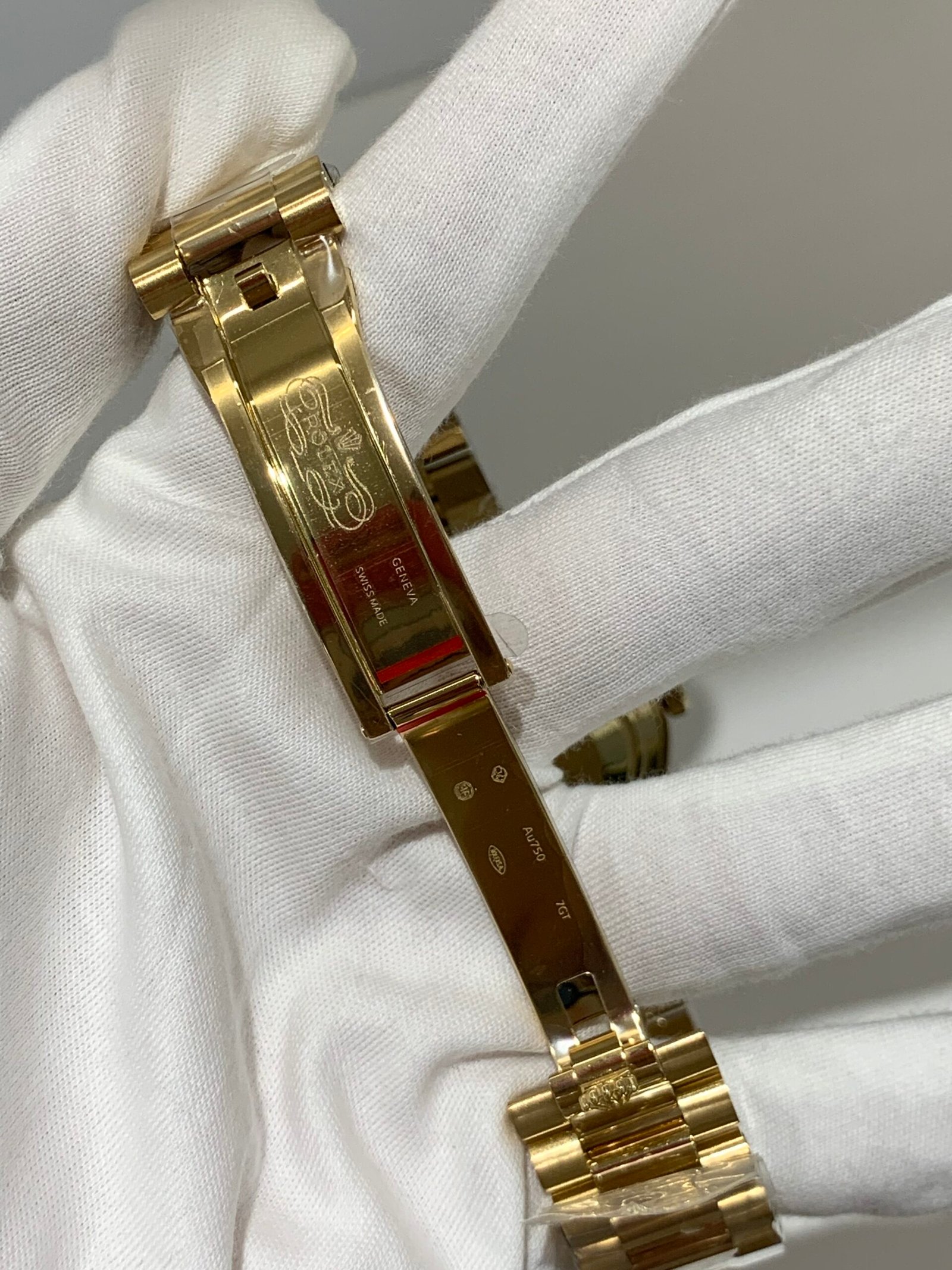 Polished 18K Yellow Gold Fluted BezelA classic fluted bezel, perfectly polished to a mirror shine. It frames the champagne dial without distraction and maintains the correct curvature relative to the mid-case.