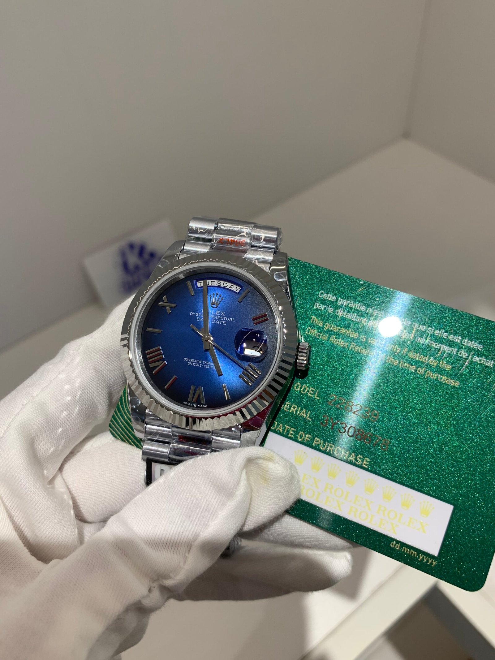 MODEL REFERENCE M228239-0007 FACTORY / VERSION VSF (VS Factory) Latest Batch MOVEMENT VS3255 Super Clone (72h Reserve) CASE MATERIAL 18K White Gold-Plated (Full Gold Appearance) CRYSTAL Sapphire w/ Clear AR Coating & Cyclops Lens BEZEL: Polished Fluted 18K White Gold (No White Scale Ring) DIMENSIONS 40mm x 12.1mm WATER RESISTANCE: 100m (Simulated) BRACELET: President (Three-Link, White Gold-Plated) (May be slight errors in the measurements. If you have any concerns, please contact service for confirmation)