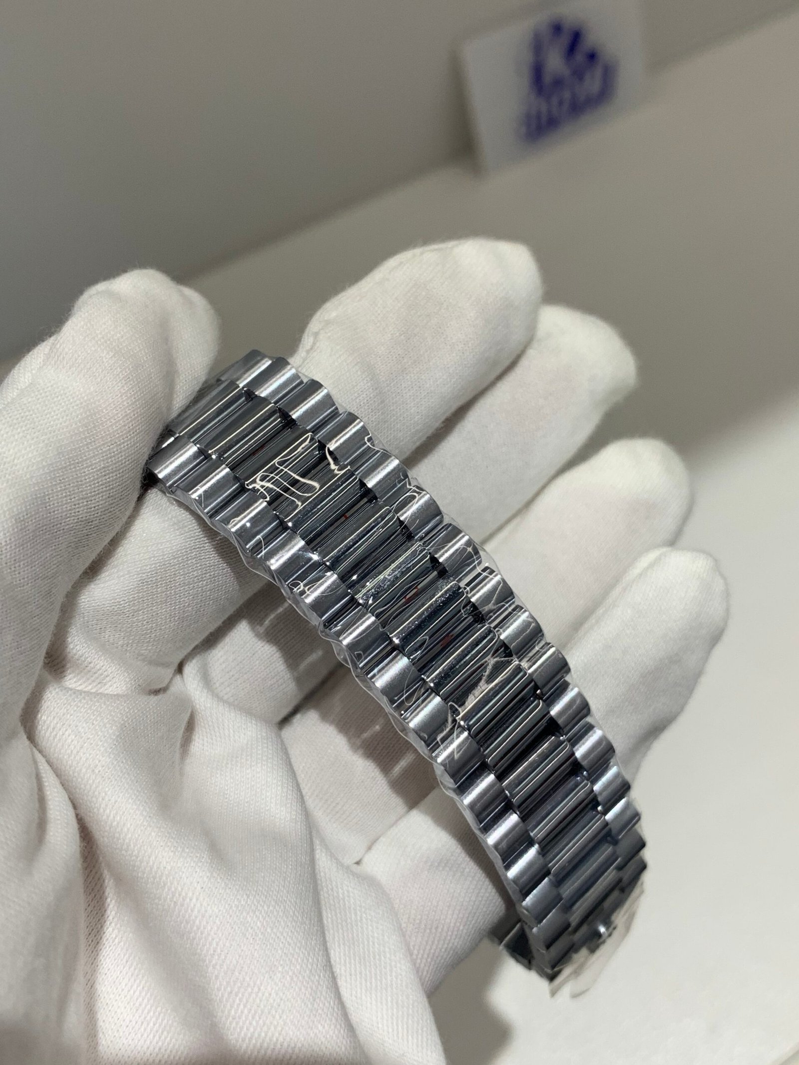 Polished Fluted 18K White Gold (No White Scale Ring on Bezel)A classic fluted bezel, a signature design element of the Day-Date series, crafted from 18K white gold plating and polished to a mirror shine—with no white scale ring on the bezel, adhering to the genuine M228239-0007’s minimalist design. Each flute is precisely cut to match the genuine’s proportions, maintaining the correct curvature relative to the 40mm mid-case, framing the slate grey dial without distraction. The white gold bezel (no white scale ring) enhances the watch’s minimalist luxury texture, perfectly matching the case and bracelet, and complementing the Roman numerals for a more understated and iconic look, just like the genuine model.