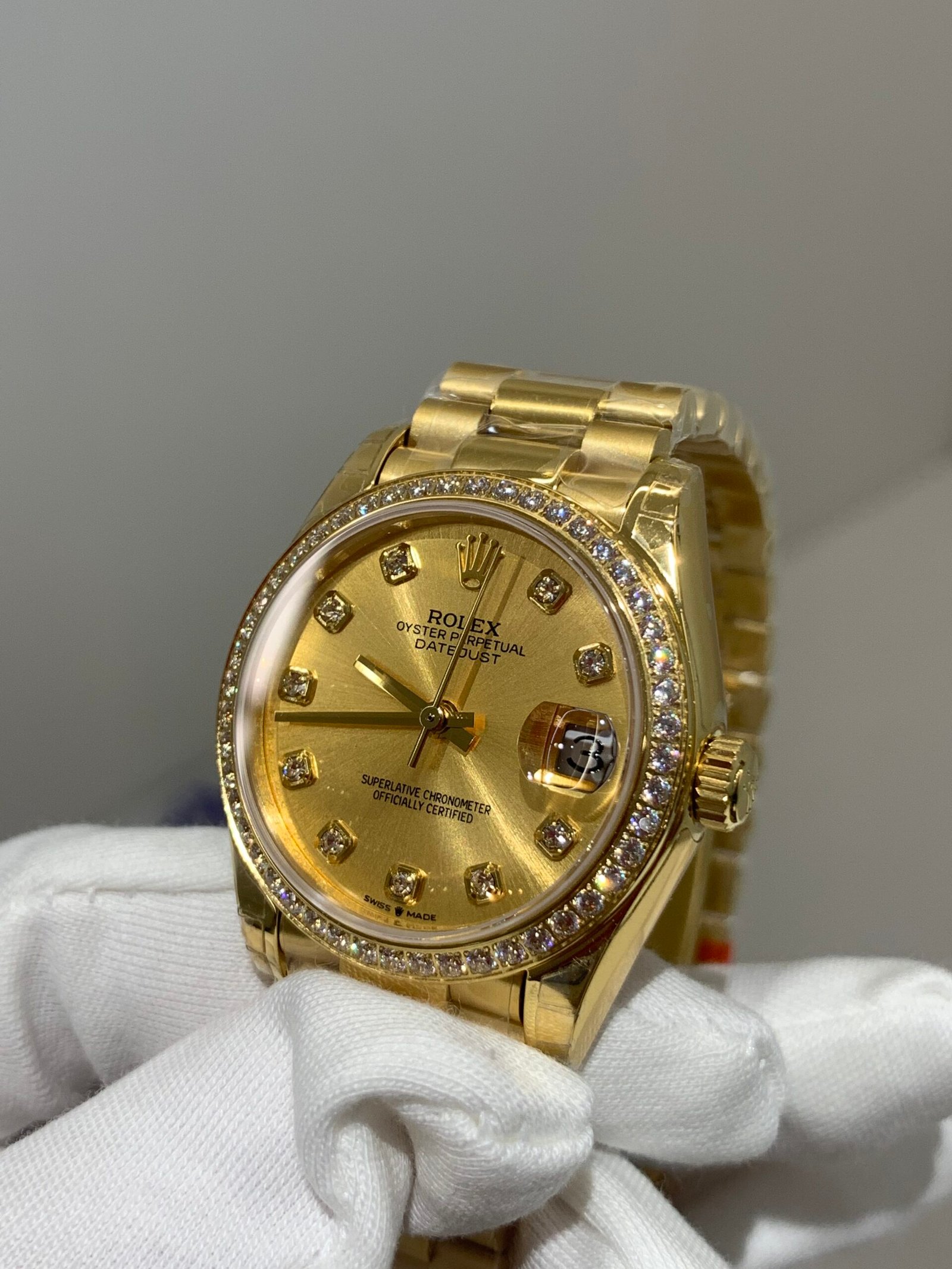 Crystal Clarity VSF is unrivaled in crystal production. The sapphire is incredibly clear, with no milky ring effect (white edge) and correct internal AR coating, making the iridescent mother-of-pearl dial and diamond accents pop in any lighting, while featuring the genuine’s iconic Cyclops lens for date magnification.