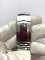 The silver sunray base exudes refined elegance, with a subtle radiant finish that shifts beautifully in light. Applied hour markers are polished to a mirror shine, filled with Swiss-grade luminous material for reliable low-light readability. VSF’s dial printing is razor-sharp—Rolex coronet, “Oyster Perpetual,” and “Superlative Chronometer” text are perfectly sized and aligned, outperforming lesser factories.