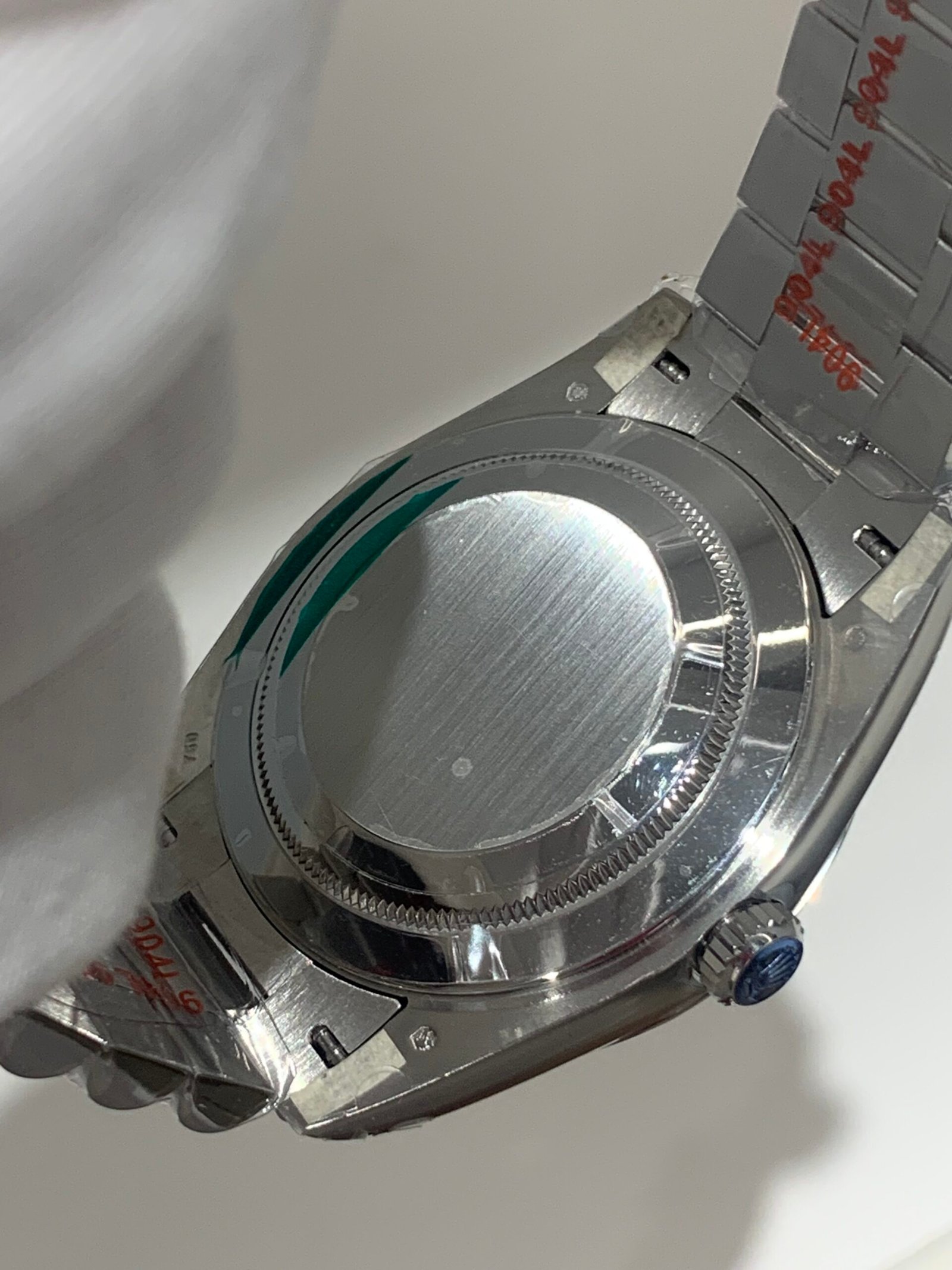 Crisp, factory‑matched dial printing with correct font, spacing, and color saturation. The day and date windows align perfectly with genuine positioning, with smooth, instant switching at midnight.
