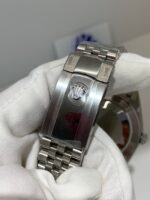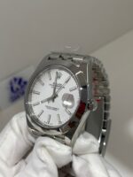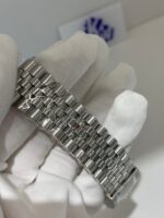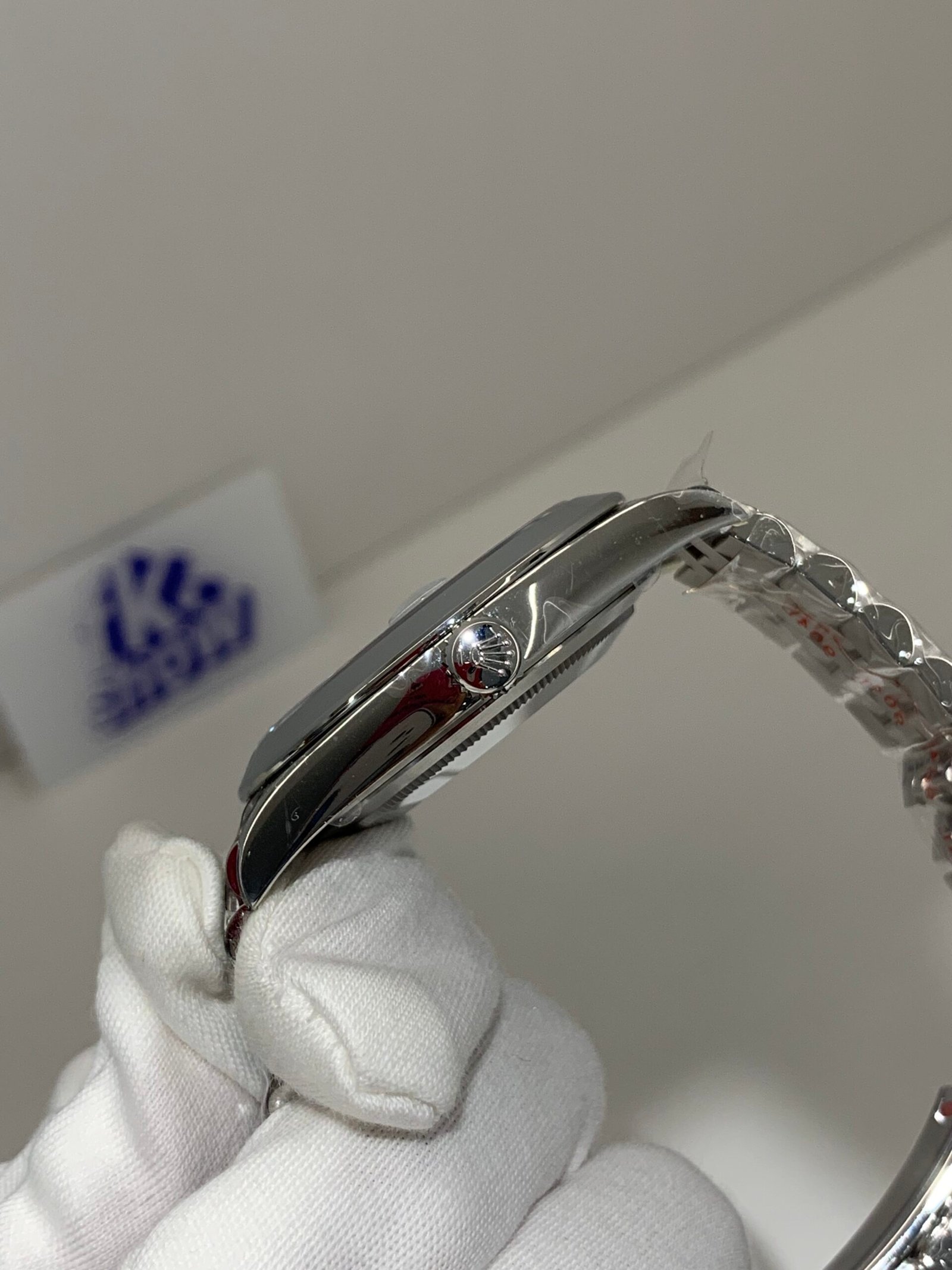 Silver Sunburst Dial Motif The silver base boasts an exquisite sunburst finish, created by masterful brushing techniques that form grooves radiating from the dial center, catching light to reveal delicate, dynamic glow that shifts with wrist movement—echoing the classic sunburst dial aesthetic of genuine Rolex models. VSF has achieved crisp, precise printing on the hour markers and logo, with no blurring or misalignment—matching the genuine’s elegant, understated aesthetic perfectly. The date window is perfectly aligned, with a clear magnifier for easy readability, a signature feature of Rolex Date models.