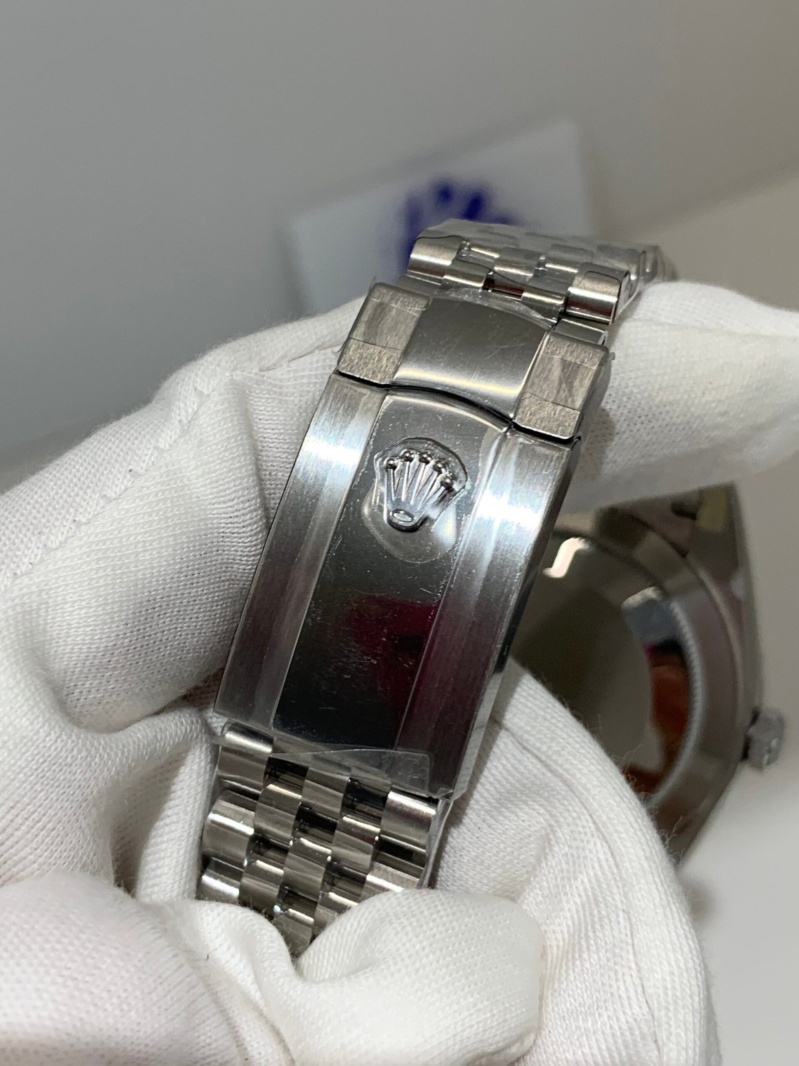 Crystal Clarity VSF is unrivaled in crystal production. The sapphire is incredibly clear, with no milky ring effect (white edge) and correct internal AR coating, making the silver sunburst dial pop in any lighting. The crystal’s domed shape and date magnifier are true to genuine, with precise edge polishing, ensuring optimal readability in all environments.