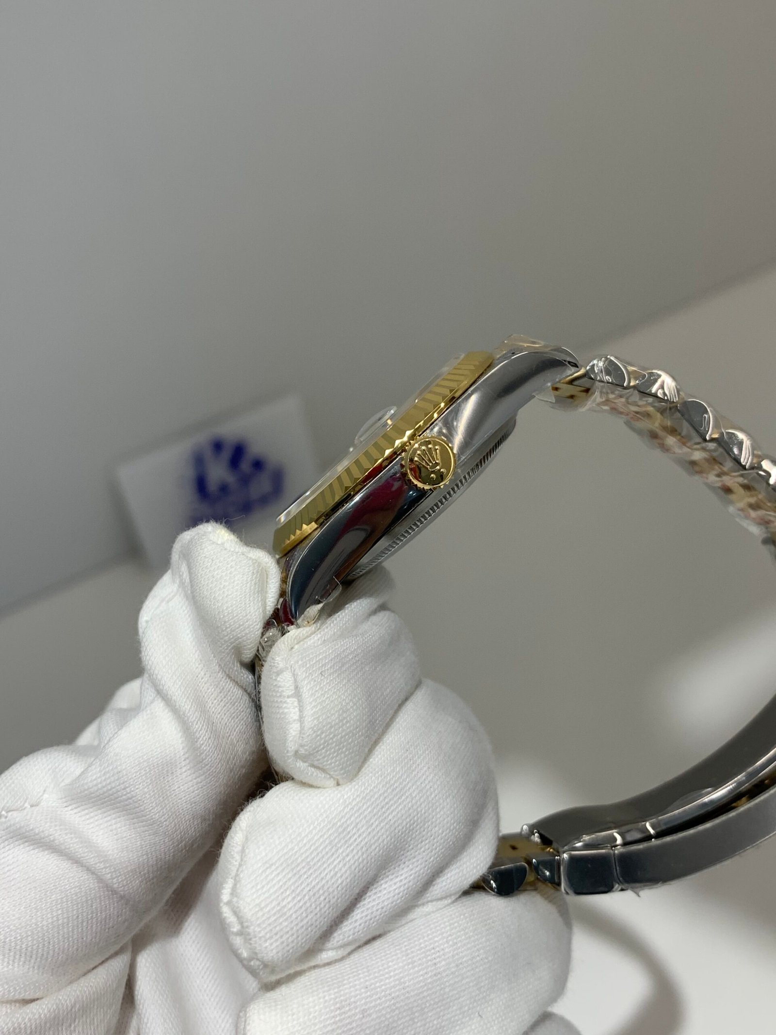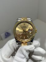 Polished 18K Yellow Gold Fluted Bezel A classic fluted bezel crafted from 18K yellow gold, perfectly polished to a mirror shine—an iconic Rolex signature. Originally designed for functional waterproofing (to screw the bezel onto the case securely), the fluting now serves as a distinguished aesthetic element, framing the chocolate brown sunburst dial elegantly without distraction and maintaining the correct curvature relative to the mid-case, matching the genuine’s proportions exactly. The polished yellow gold bezel complements the warm, rich tone of the chocolate brown dial, highlighting the model’s luxurious and mature temperament and harmonizing with the Yellow Rolesor material blend.
