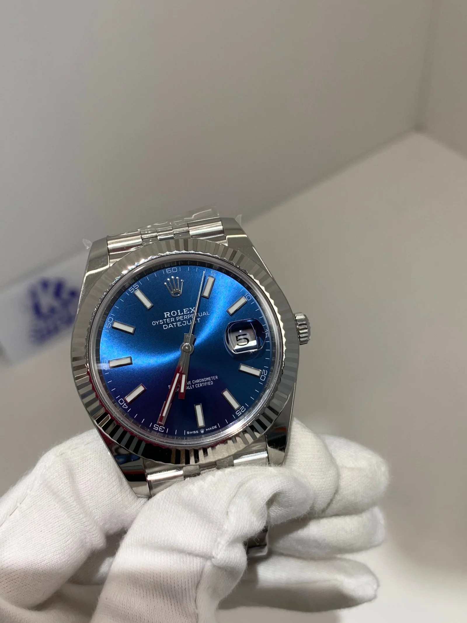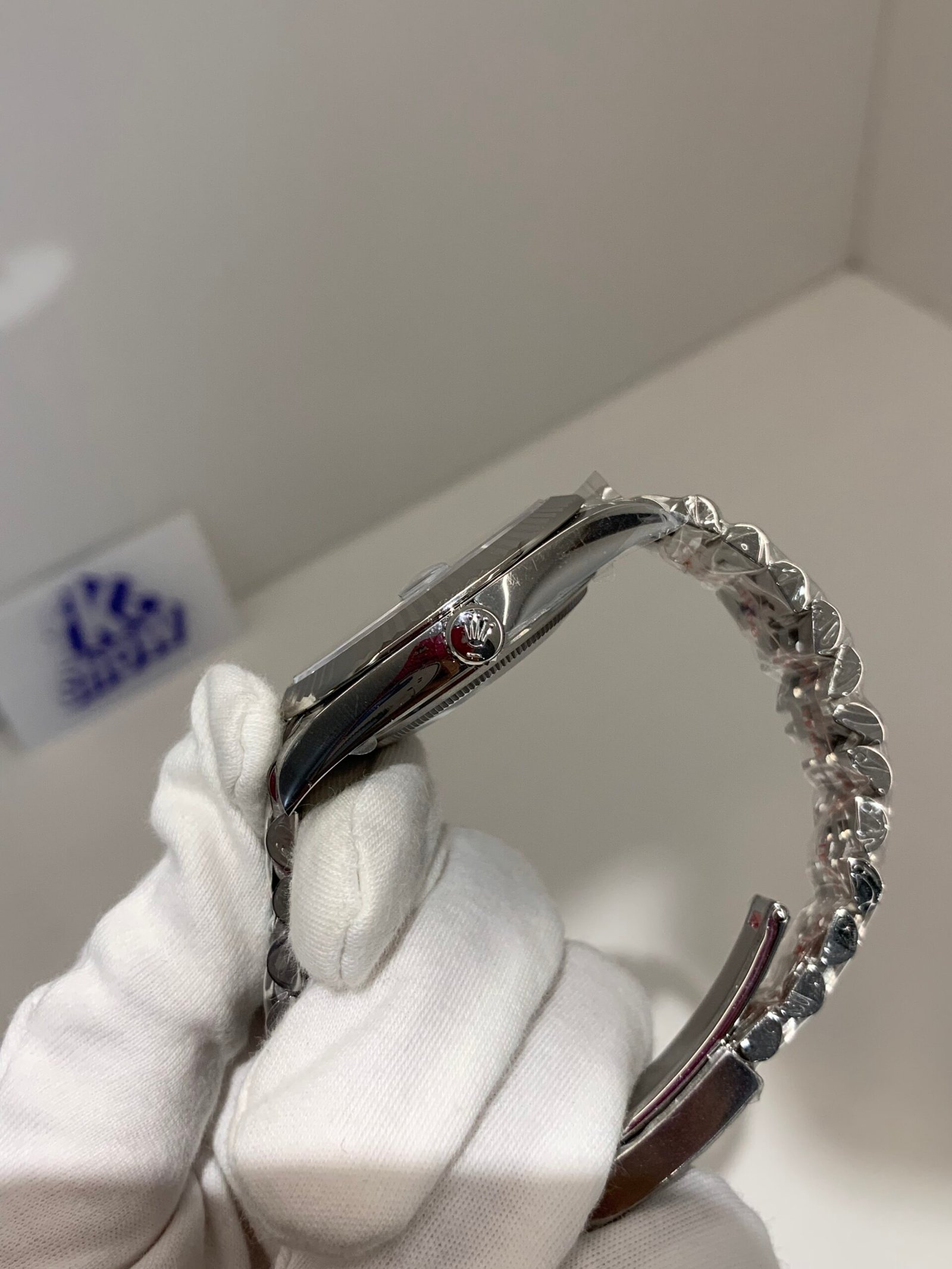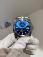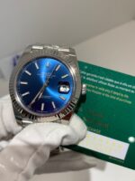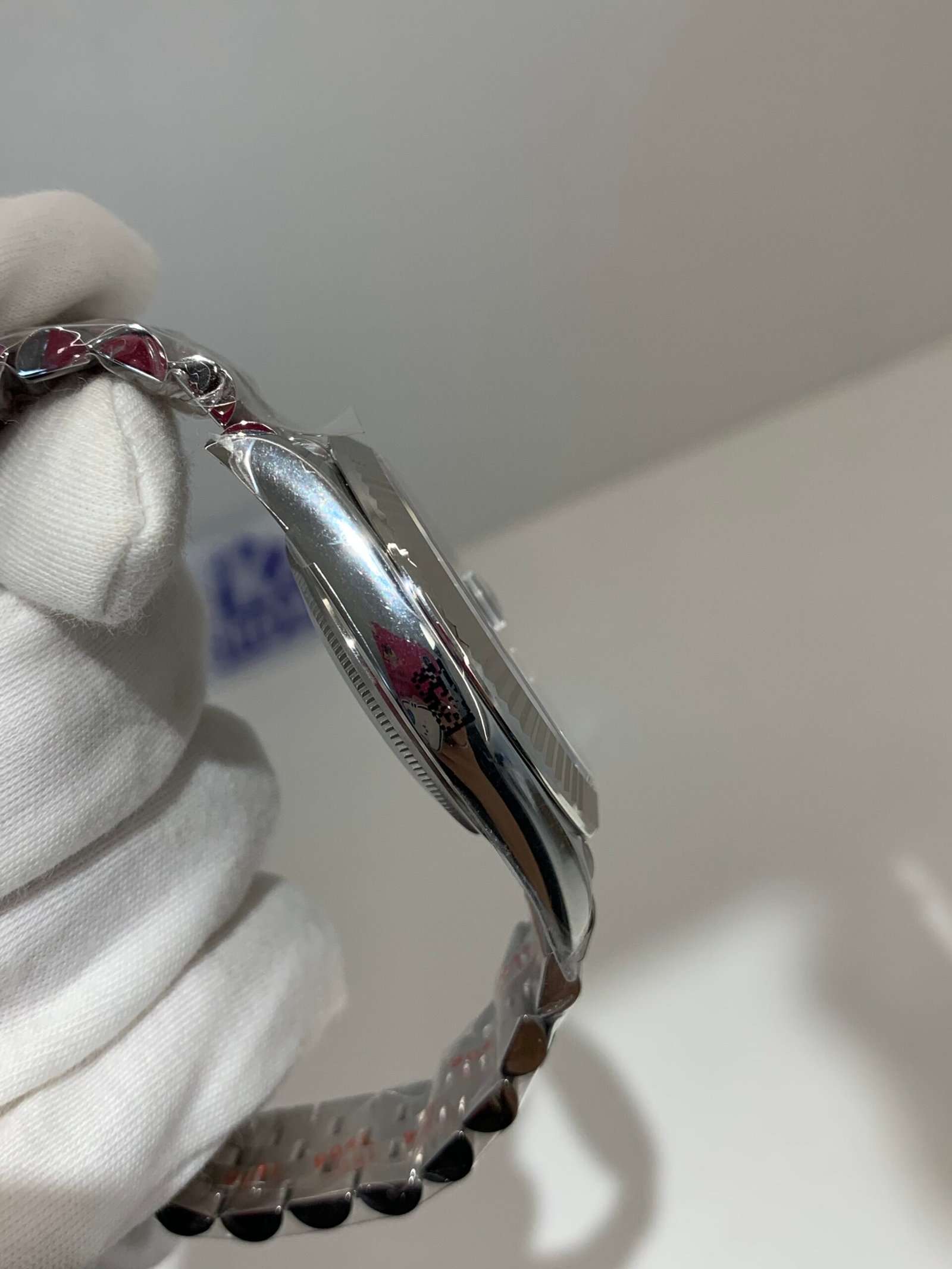 Polished Fluted SteelA classic fluted bezel, a signature design element of the Datejust series, perfectly polished to a mirror shine. Each flute is precisely cut to match the genuine’s proportions, maintaining the correct curvature relative to the mid-case, framing the bright blue dial without distraction, highlighting the dial’s vivid color while retaining the classic elegance of the Datejust 41.