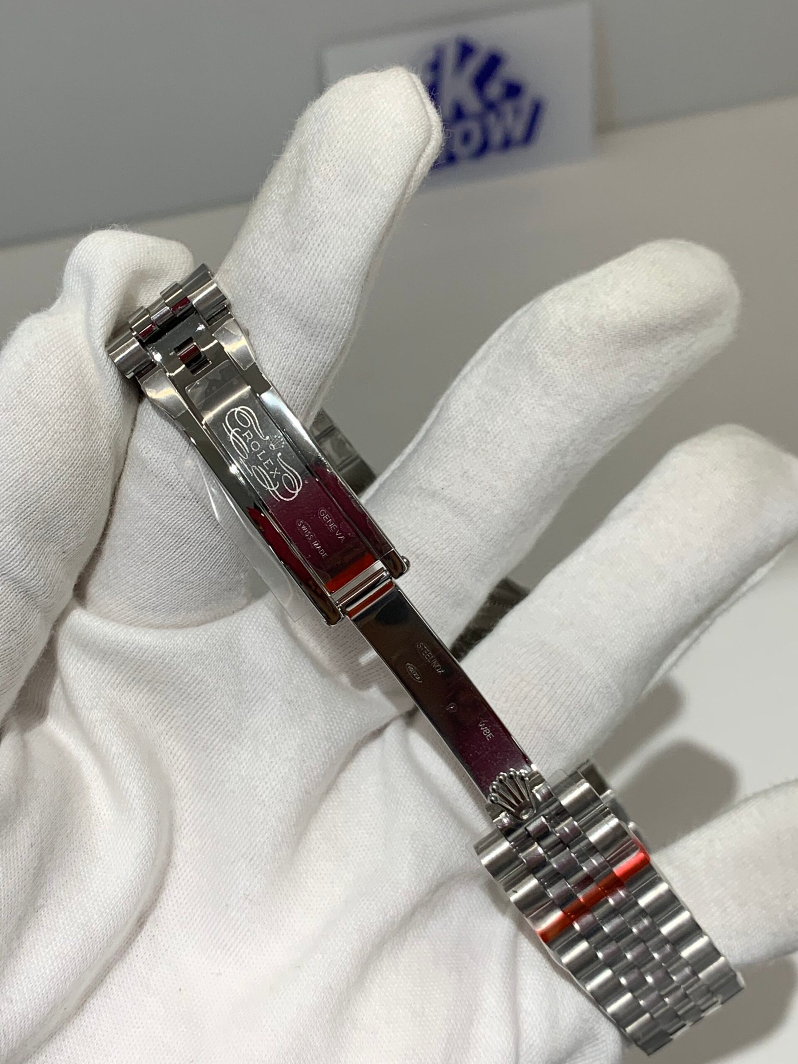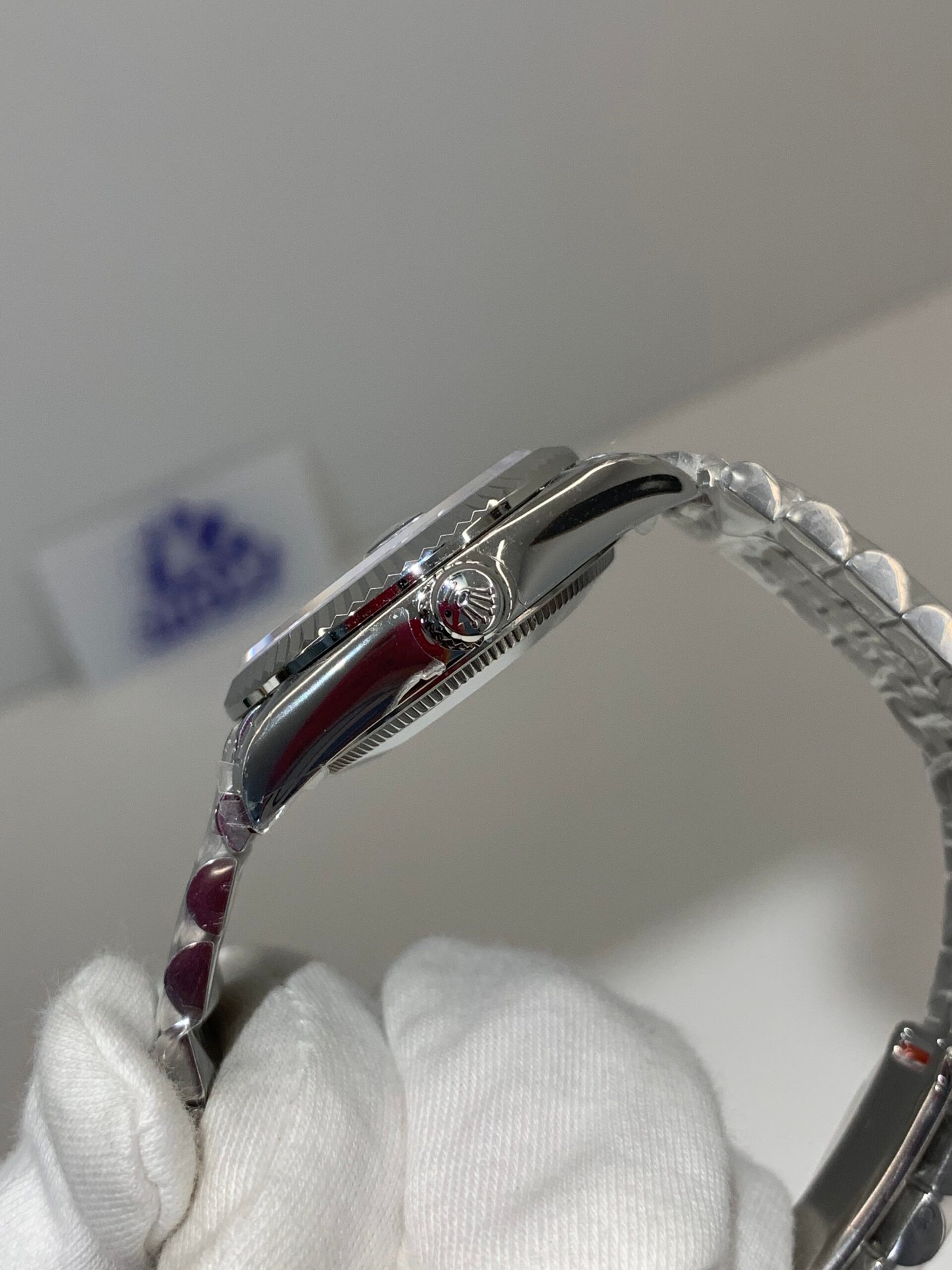 904L Oystersteel with 18K White Gold-Plated BezelVSF continues its dominance in case machining, perfectly replicating the genuine M278274-0034’s iconic combination of steel and white gold for feminine elegance. The 904L stainless steel features industry-leading brushing on the lugs and Jubilee bracelet links, reproducing the cold luster and skin-friendly texture of genuine oystersteel, while the bezel is finished with flawless 18K white gold plating—mirroring the genuine’s precious metal luster and texture. The Jubilee bracelet (five-link design) boasts a buttery smooth taper, tailored for feminine wrists to ensure a comfortable and snug fit that feels identical to the genuine article, balancing luxury and practicality for daily wear.