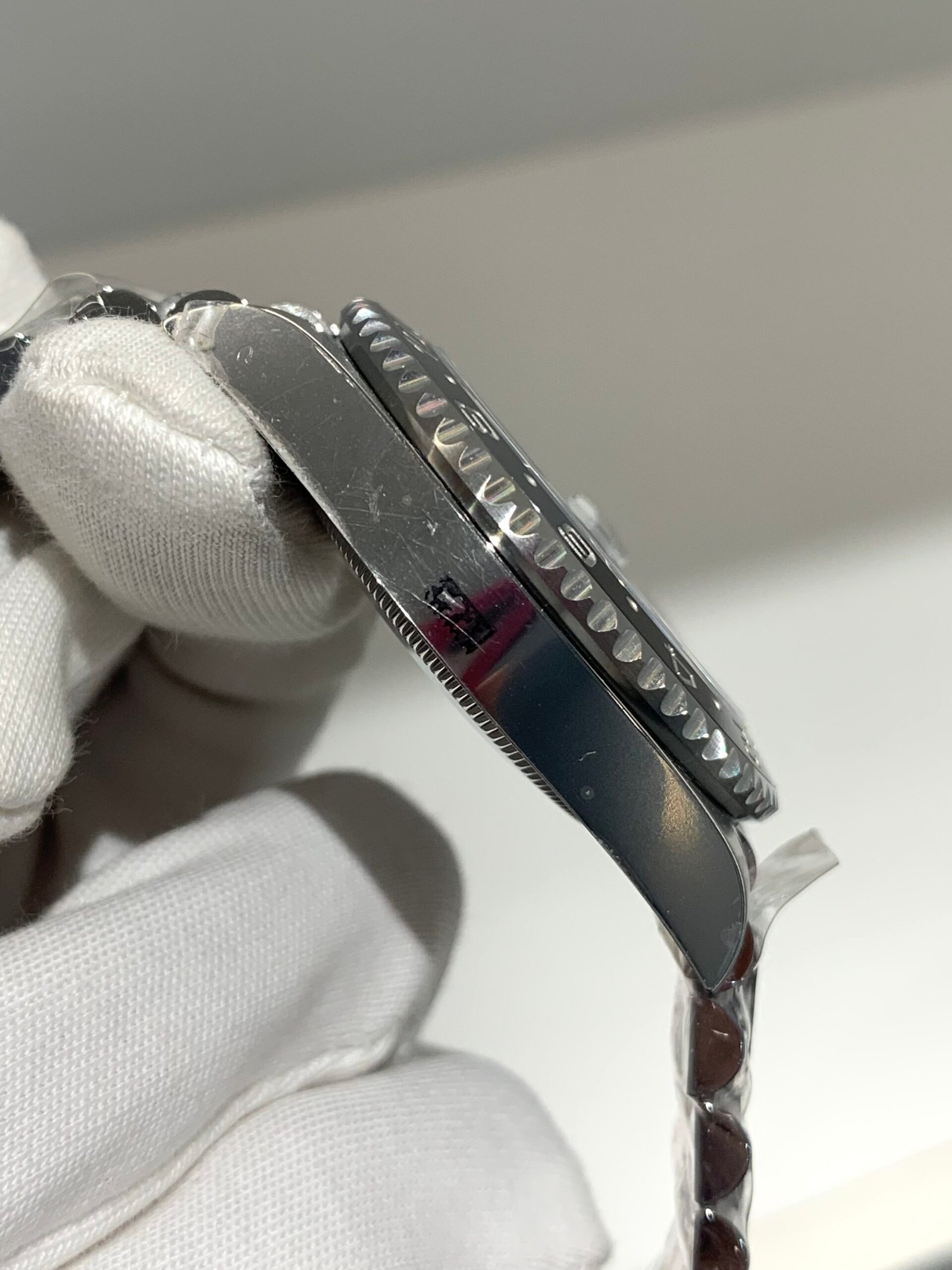 Bi-color ceramic bezel with clean black and green sections, sharp 24-hour scale engraving, and perfect color matching. Unidirectional 120-click action with solid, consistent feel.