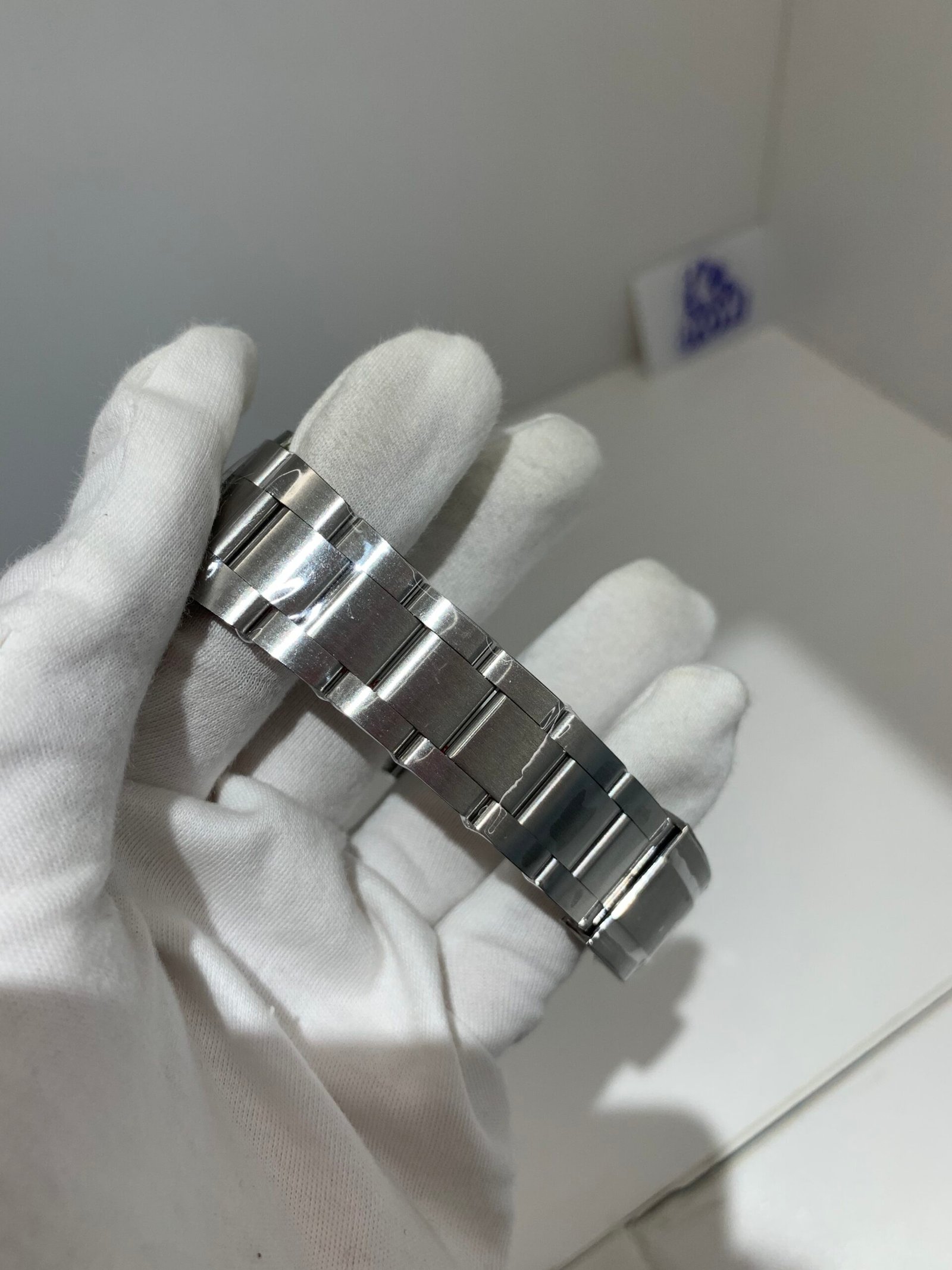 A vivid, deep bright blue sunburst finish with rich layering and even colour under all lighting. Applied hour markers and hands are filled with high-intensity luminous material, delivering excellent legibility while staying faithful to the genuine aesthetic.