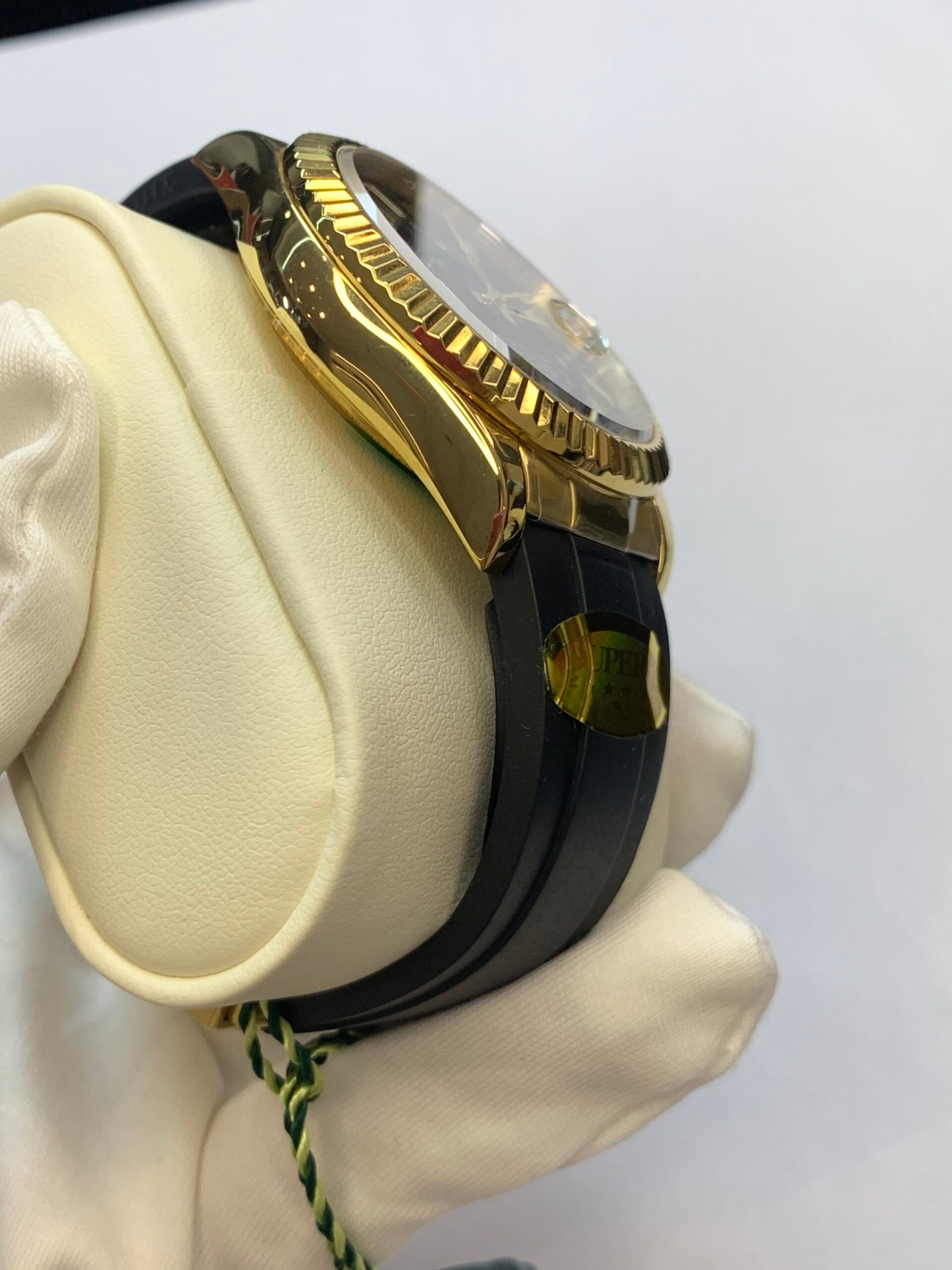 Full 18K Yellow Gold Finish VSF continues its dominance in case machining. The full 18K yellow gold features industry-leading polishing on the lugs and a buttery smooth Oyster bracelet taper that feels identical to the genuine article on the wrist, embodying the model’s luxurious all-gold texture and comfortable wearing experience—true to Rolex’s noble craftsmanship in precious metal watchmaking.
