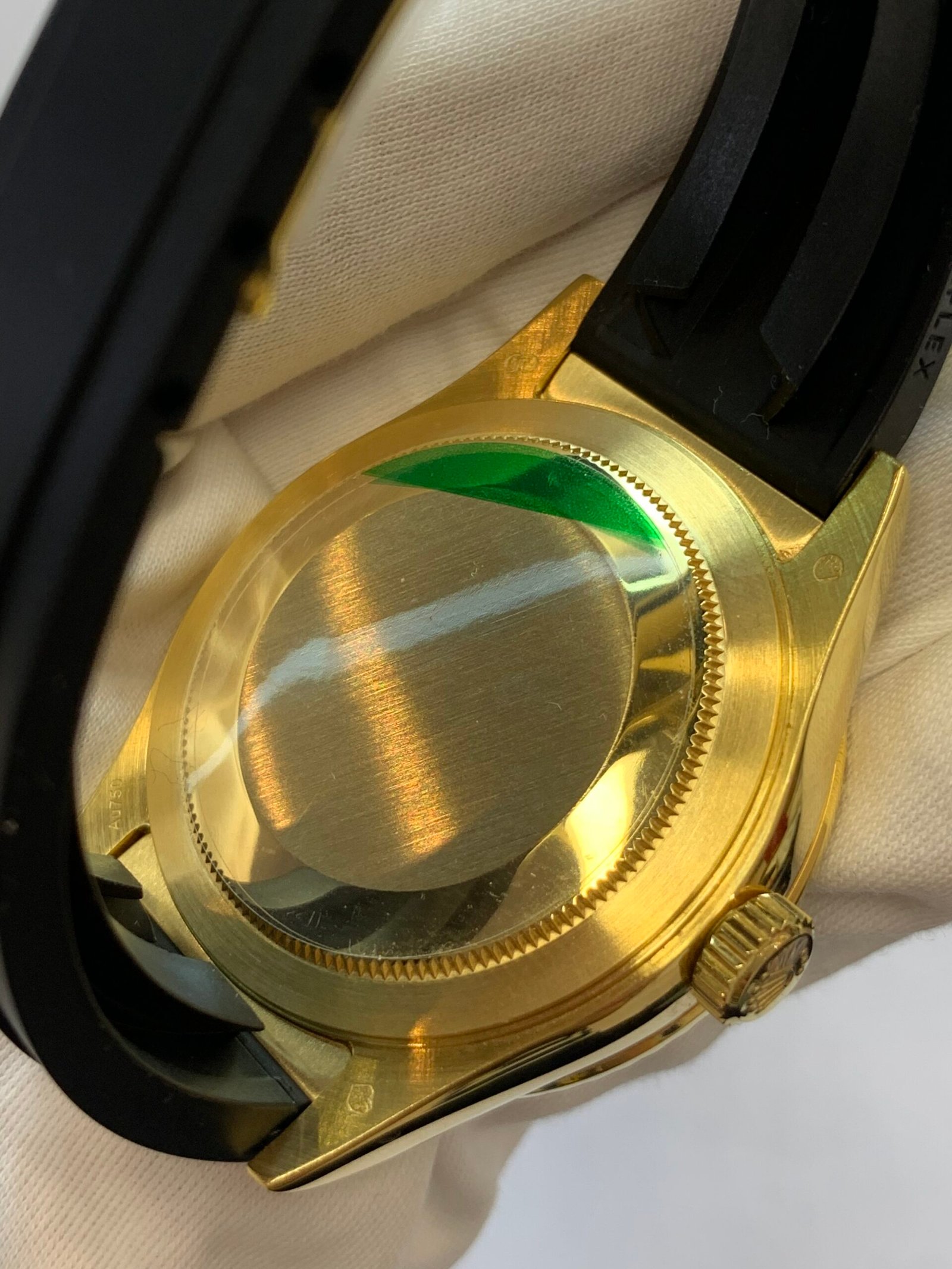 Crystal Clarity VSF is unrivaled in crystal production. The sapphire is incredibly clear, with no milky ring effect (white edge) and correct internal AR coating, making the scarce gray dial and functional displays pop in any lighting, while featuring the genuine’s iconic Cyclops lens for calendar magnification.