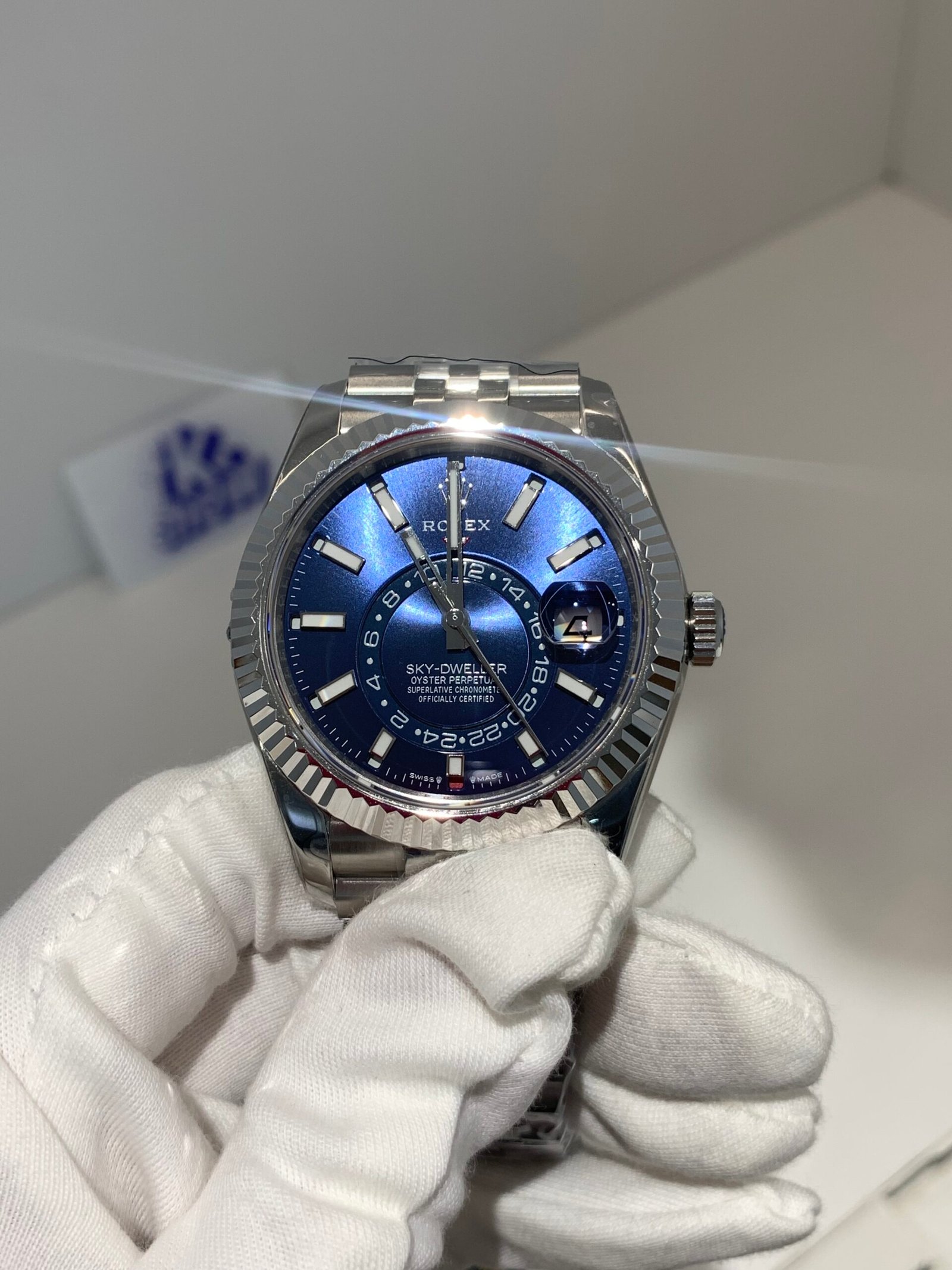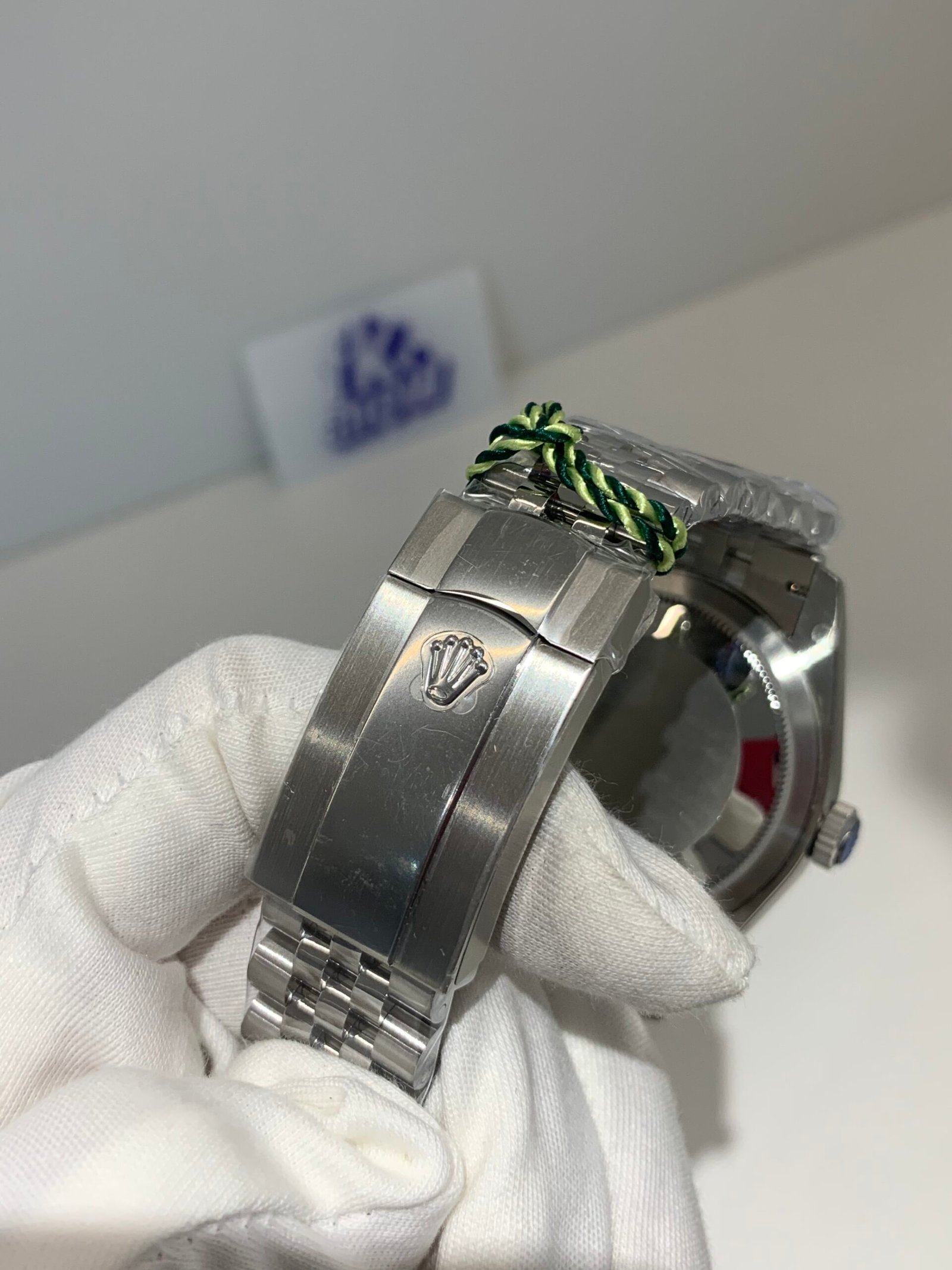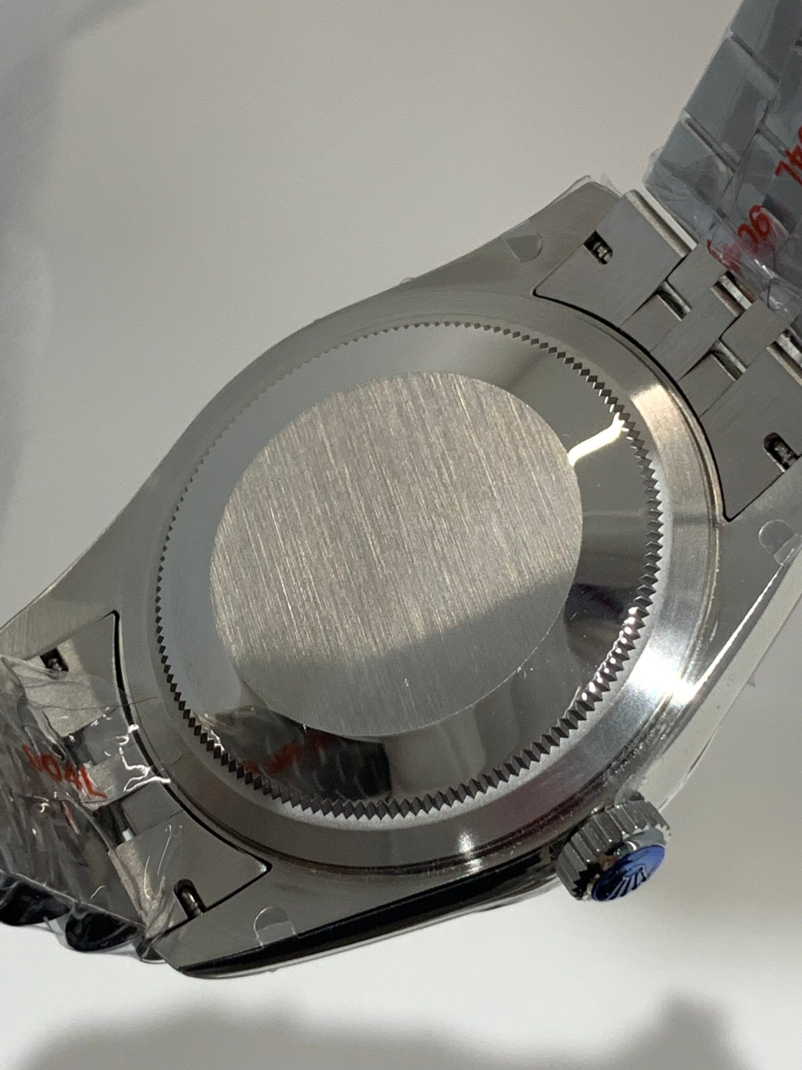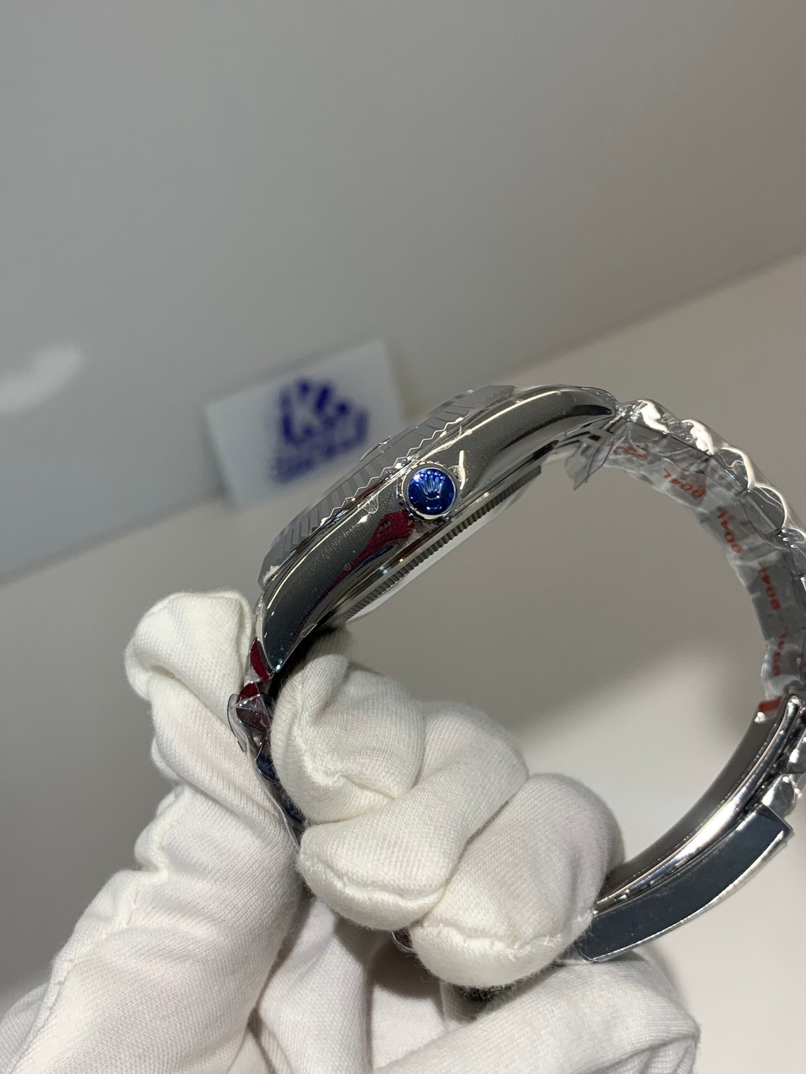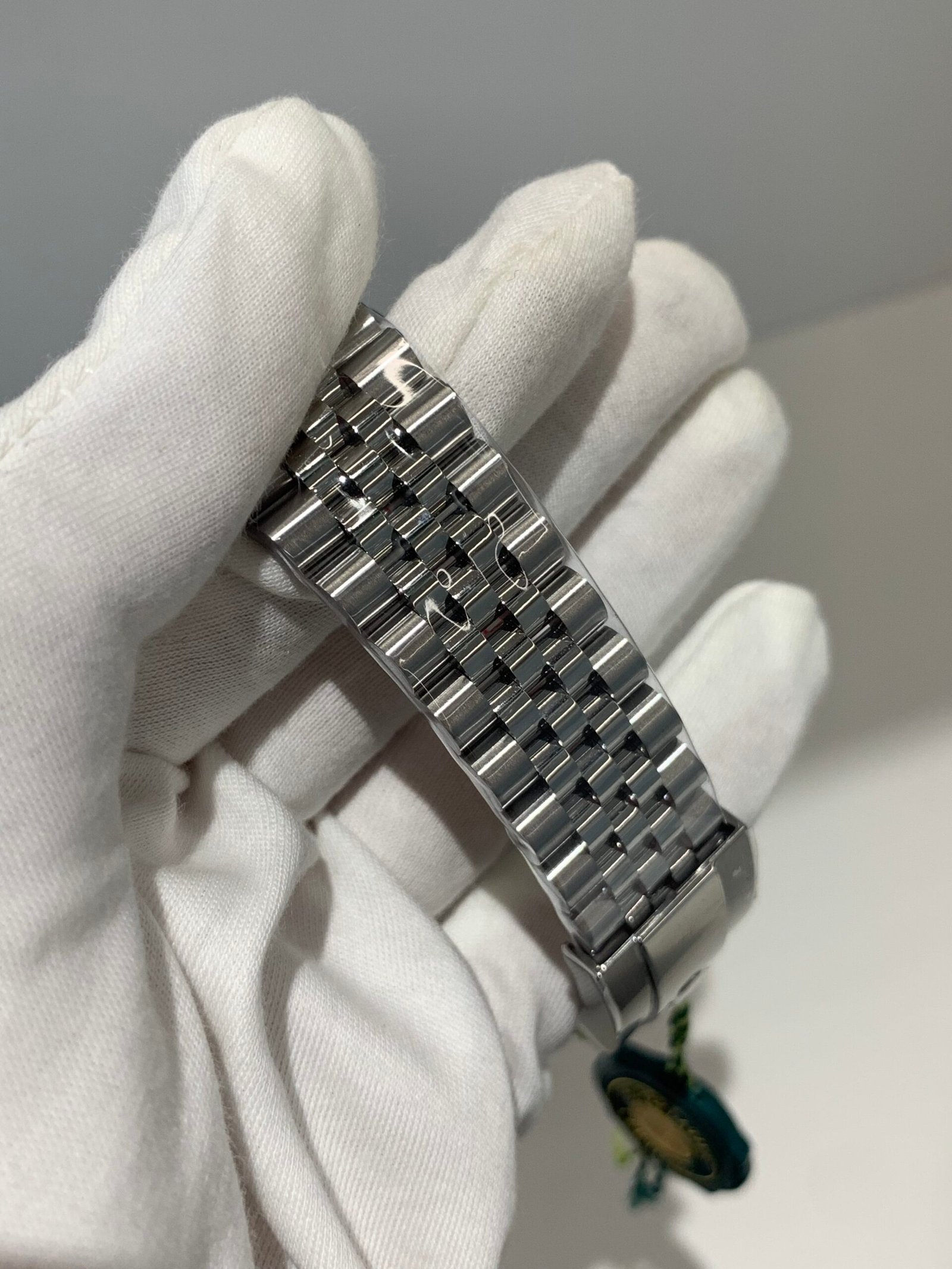VSF sapphire crystal is incredibly clear, with no milky ring effect and correct internal AR coating, making the smoke-gray dial and diamond markers pop in any lighting.