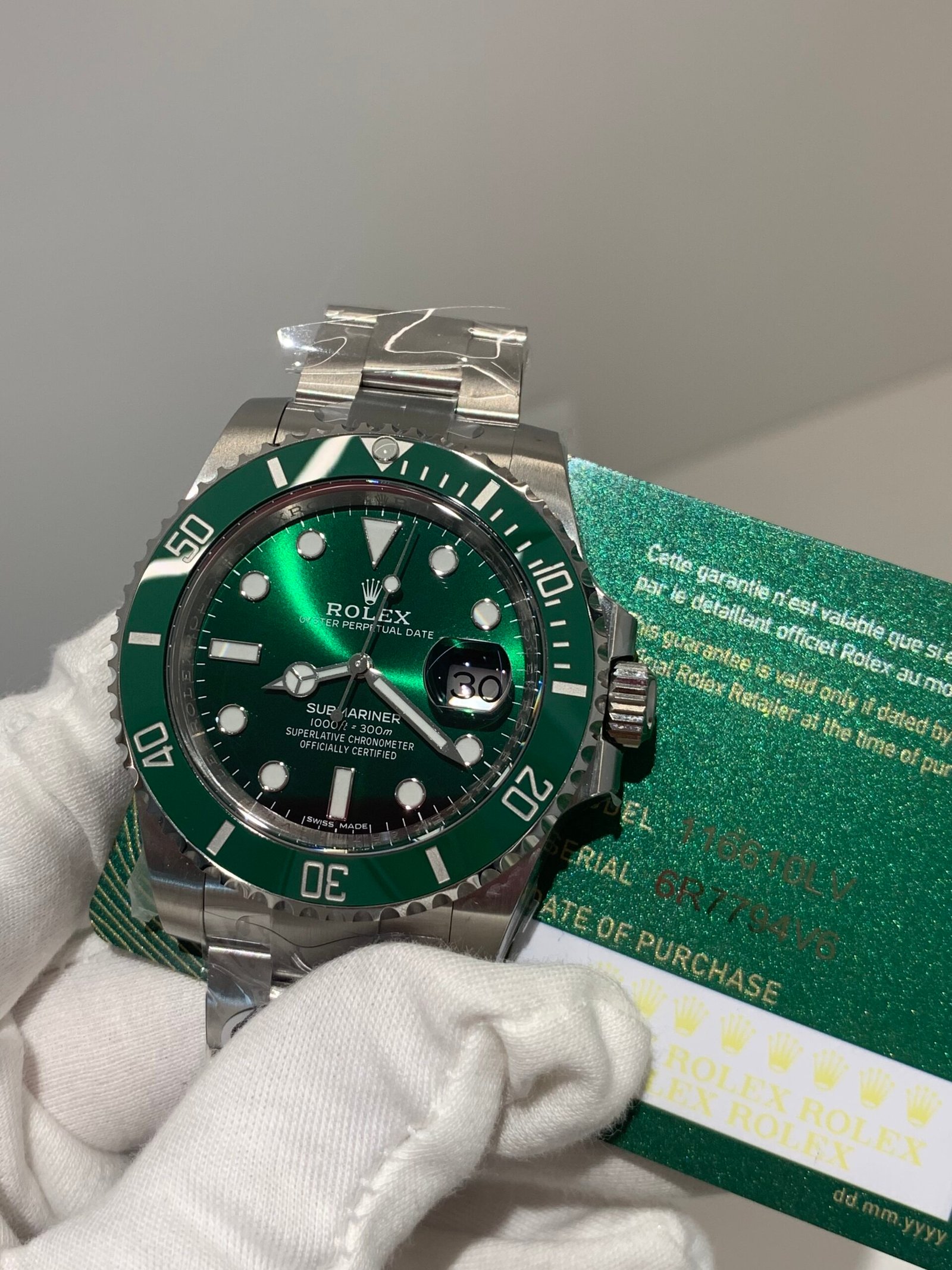 - BEZEL MATERIAL: Green Cerachrom Ceramic with Platinum PVD Scale