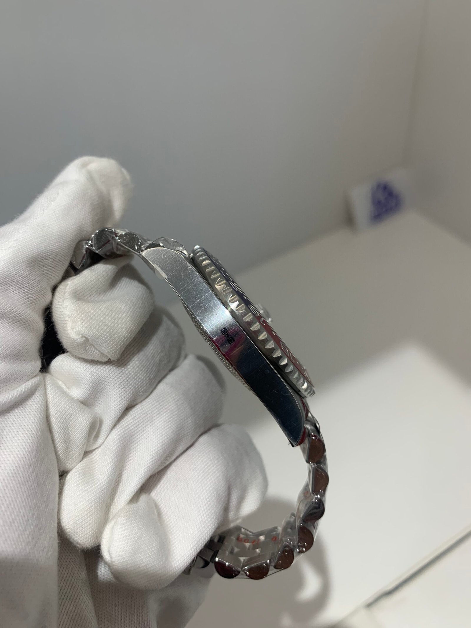 Creating a single-piece ceramic bezel with two distinct colors (Red & Blue) is notoriously difficult. Market versions often separate at the transition or use incorrect “painted” red.